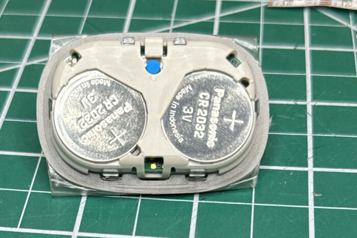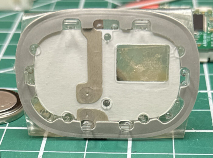 And that’s a big blue button. The cover, shown earlier, flexes to click the button. This is the logging button that the user presses (when they feel an event?). Makes sense that it’s big and sturdy.
