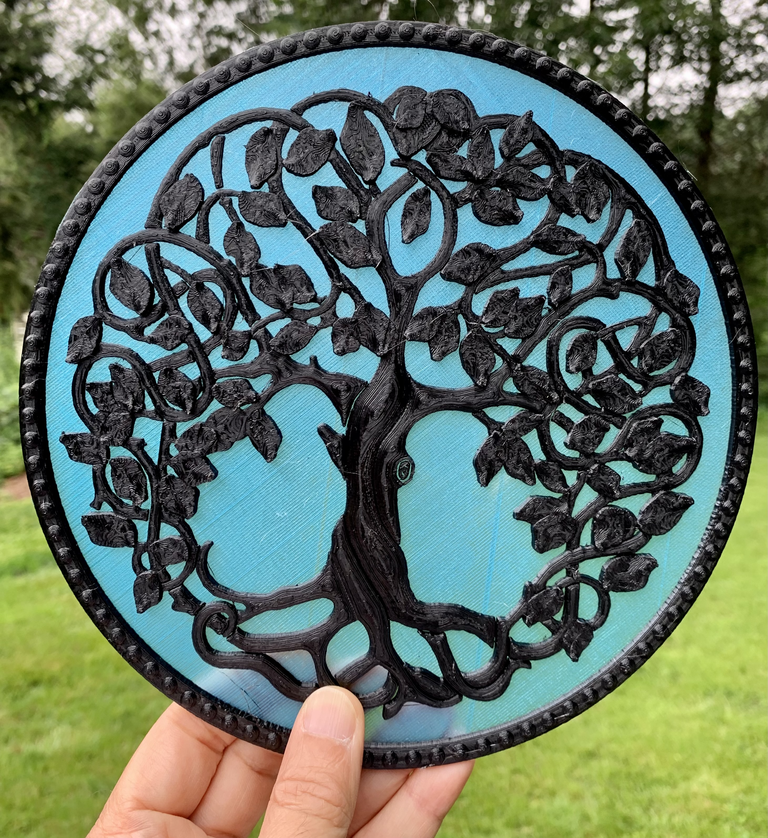 After printing some test prints to make sure I was making the backing properly, I printed up all the parts – the ring, the backing, and the tree.