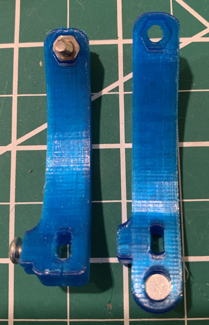 The buttons I got didn’t fit into the hole in the original model, leading to some funny attempts by me to fit it and ruining one of the two buttons that came (I had bought a 2-pack because I eventually was going to build a second winder, right?).
