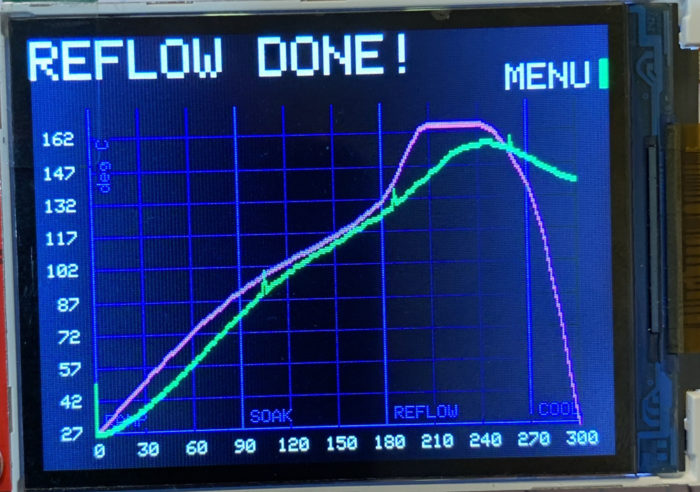 Then, in what are those, ‘fuck, why did it only occur to me now after all the work I put in?’ moments, I realized I could tweak the controller to hit the needed reflow temps by just raising the desired temps in the controller profile.