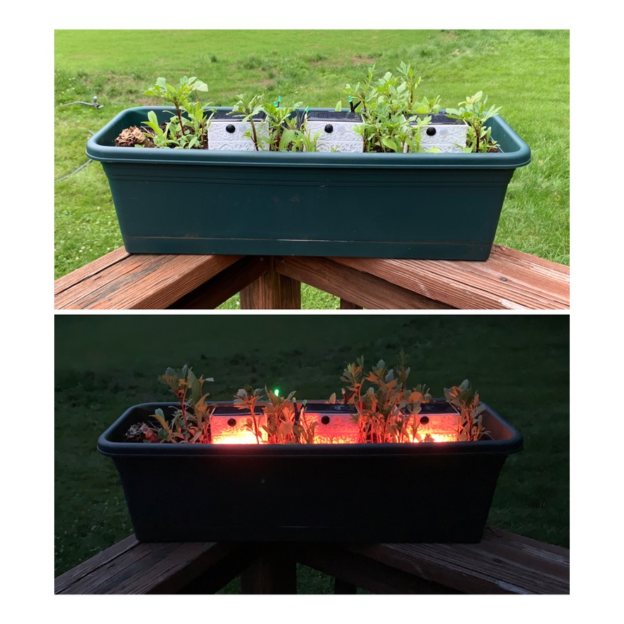 Now I have a pretty flowerpot with flowers that draw life from light and three candle-light electronics that draw life from light (see upper left image for dusk and day views).