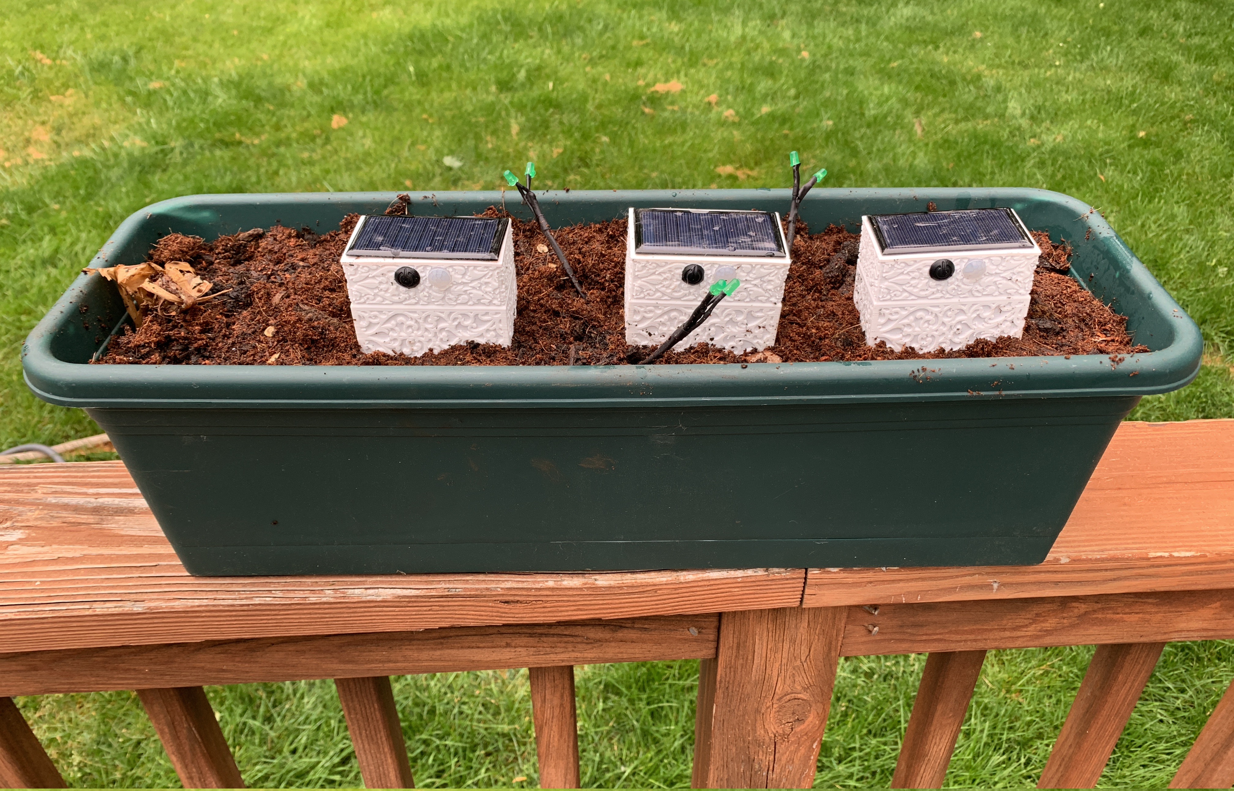 Now that I had the three solar-power parts, I filled up a flowerpot and spread wildflowers around (see image, right).
