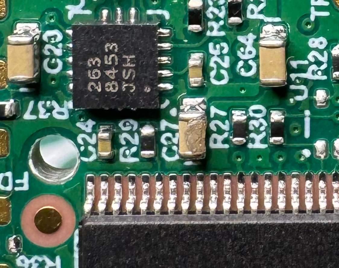 Next to the memory chip, this chip says 263 8453 JSH. I wonder if it’s a NXP MMA8543 accelerometer. Not sure why there’s an accelerometer on this. If that’s what that chip is. I was just Googling things, not chasing it too deep.